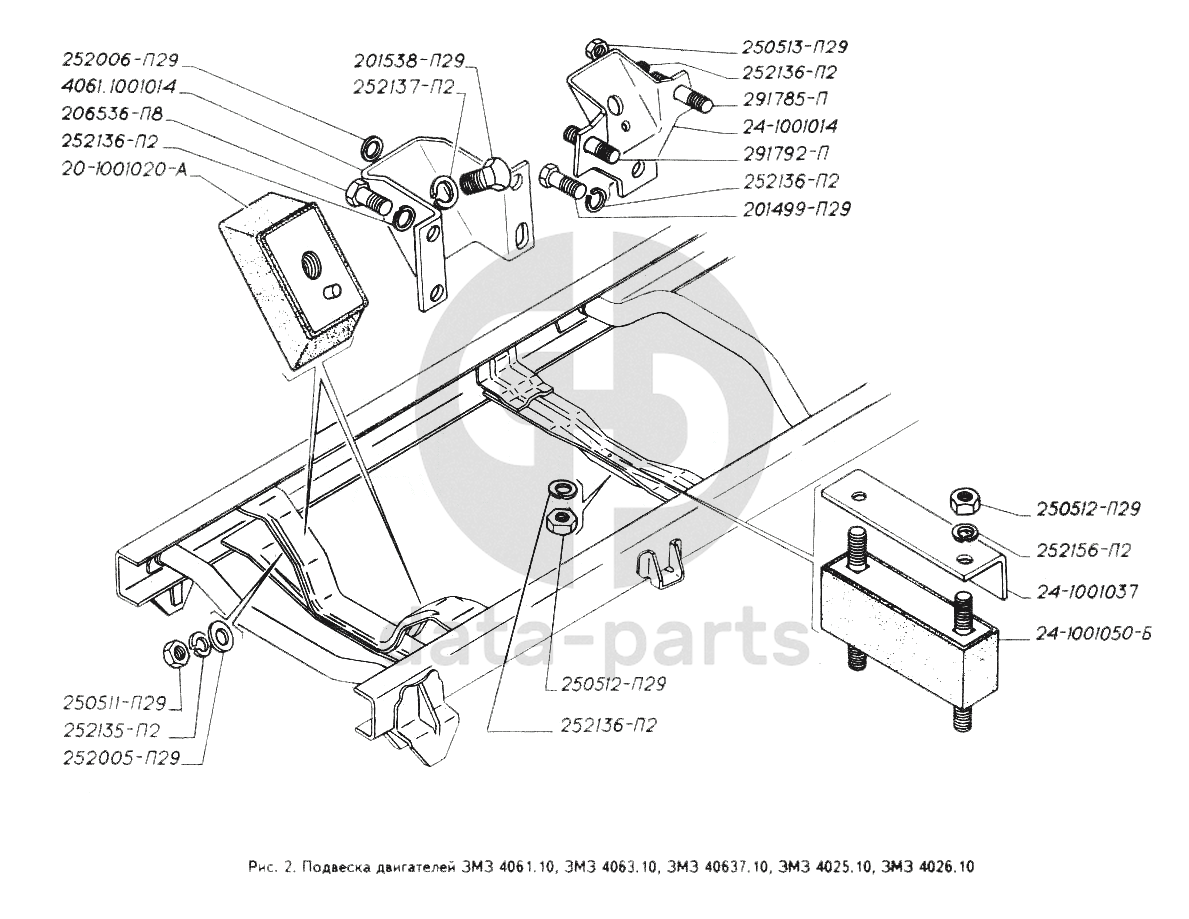 Подвеска двигателей ЗМЗ 4061.10, ЗМЗ 4063.10, ЗМЗ 40637.10, ЗМЗ 4025.10, ЗМЗ 4026.10 ГАЗ-3302 (ГАЗель)