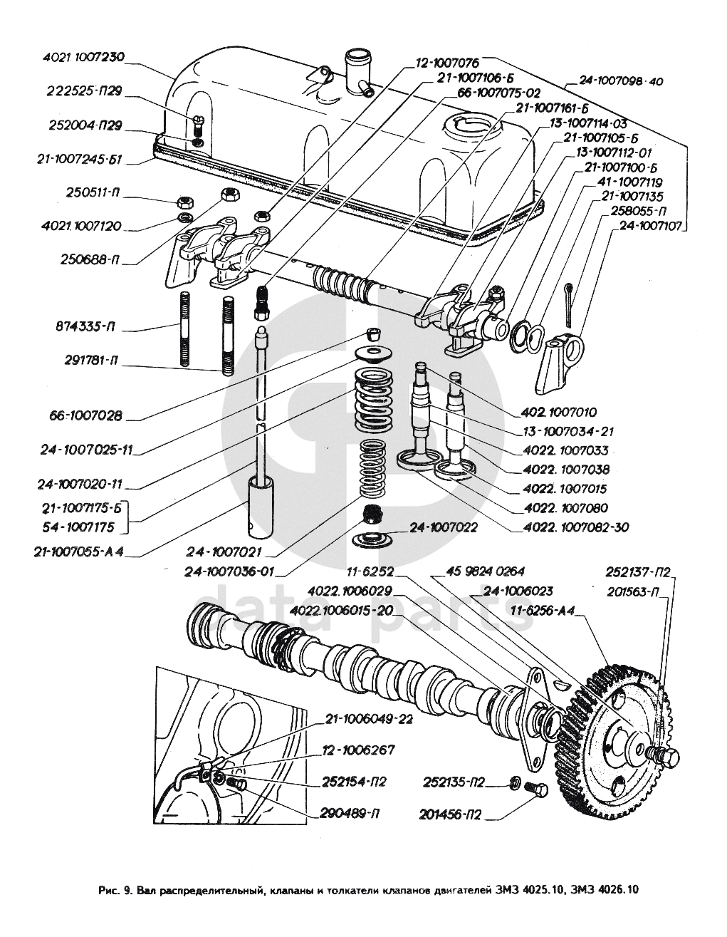 Вал распределительный, клапаны и толкатели клапанов двигателей ЗМЗ 4025.10, ЗМЗ 4026.10 ГАЗ-3302 (ГАЗель)