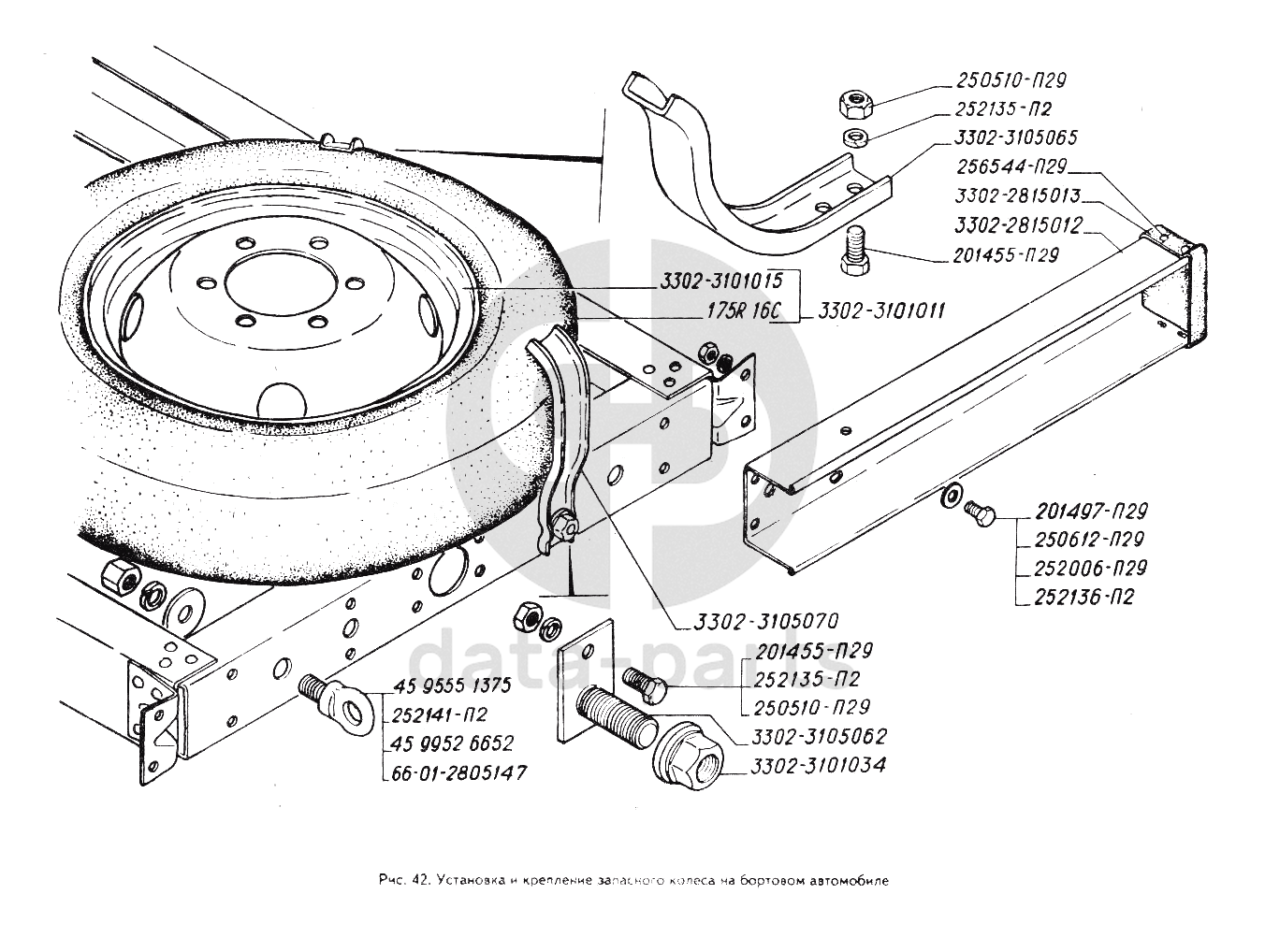 Установка и крепление запасного колеса на бортовом автомобиле ГАЗ-3302 (ГАЗель)