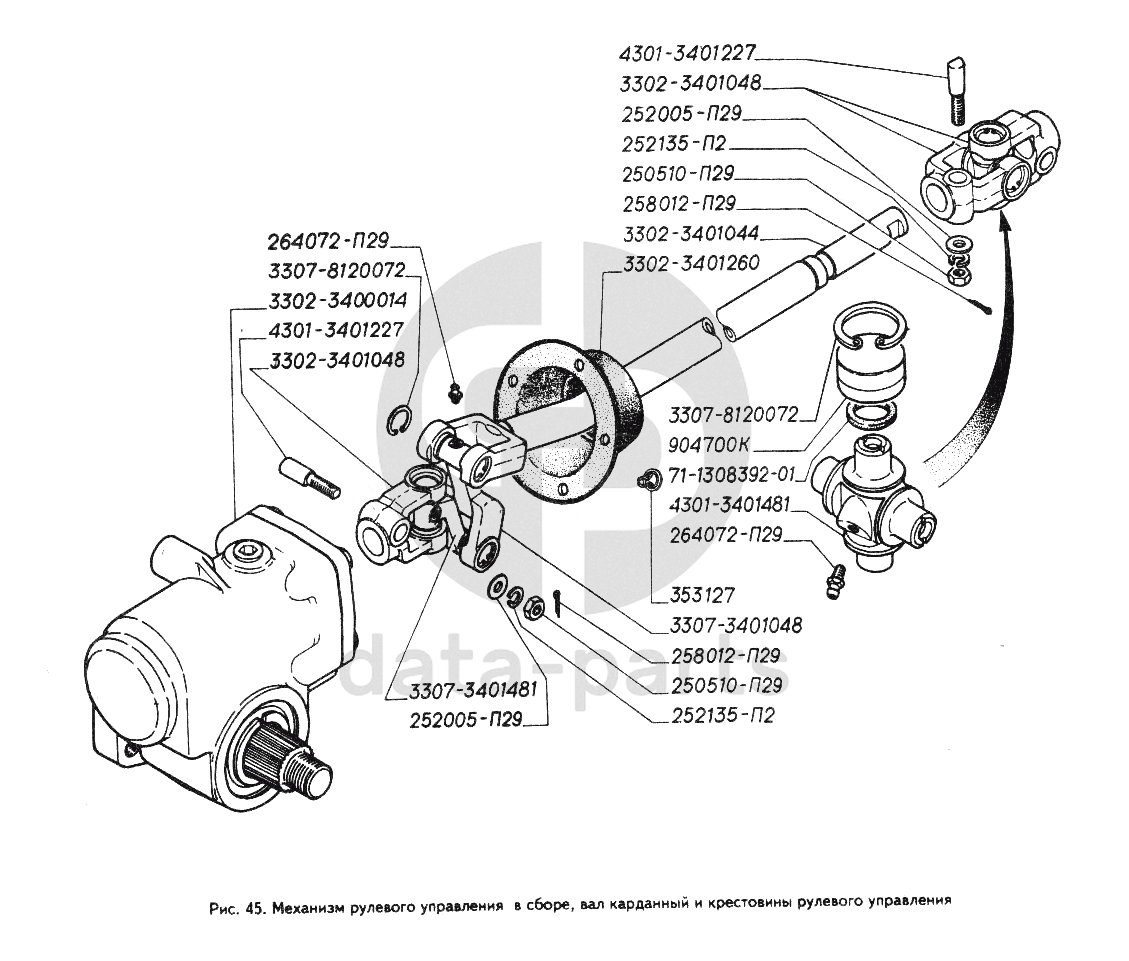 Механизм рулевого управления в сборе, вал карданный и крестовины рулевого управления ГАЗ-3302 (ГАЗель)