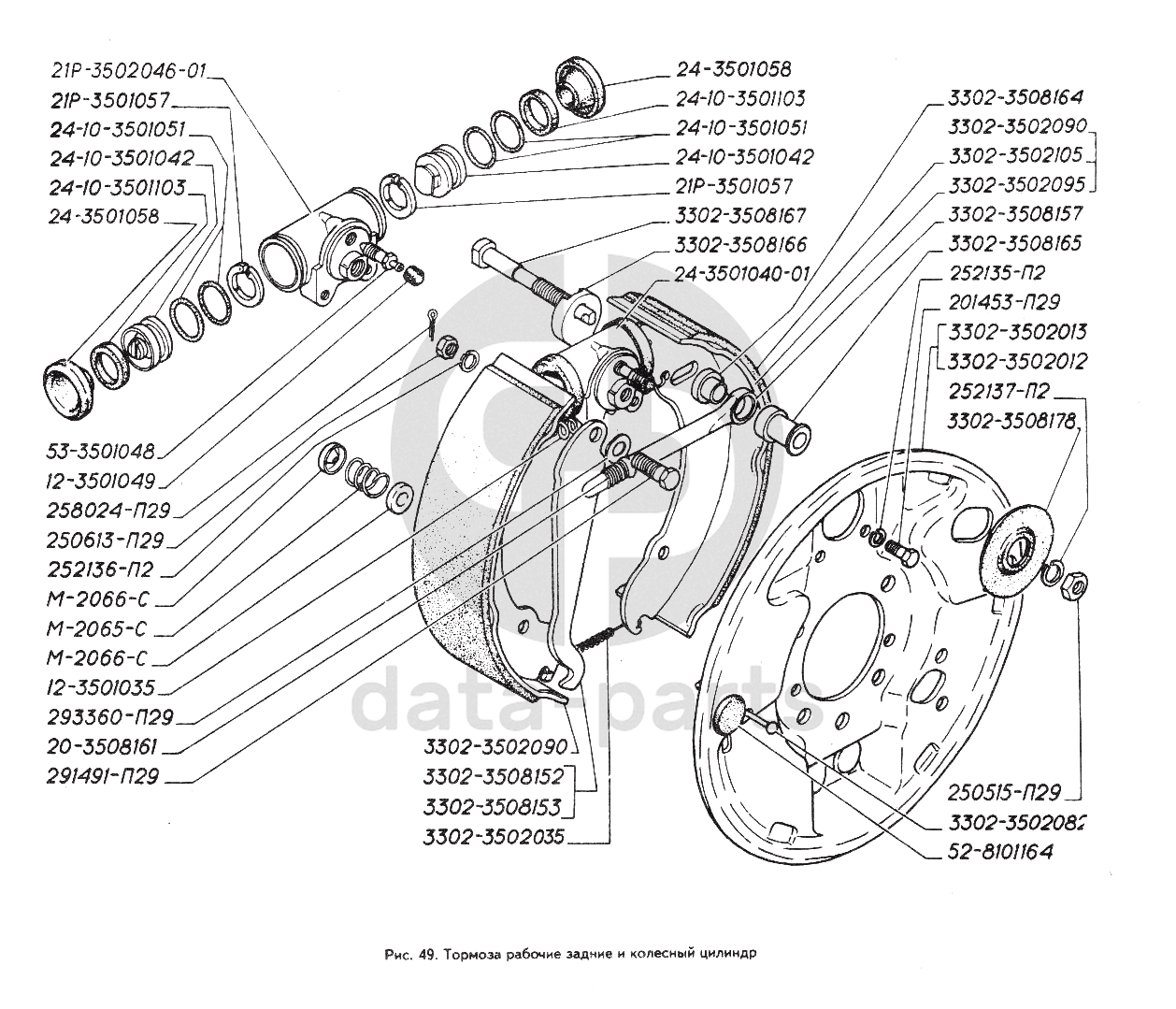 Тормоза рабочие задние и колесный цилиндр ГАЗ-3302 (ГАЗель)