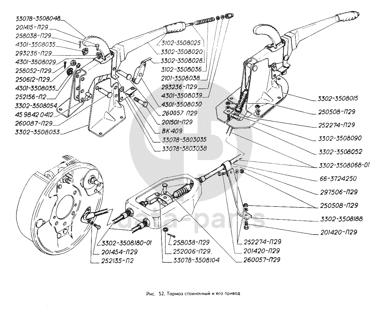 Тормоз стояночный и его привод ГАЗ-3302 (ГАЗель)