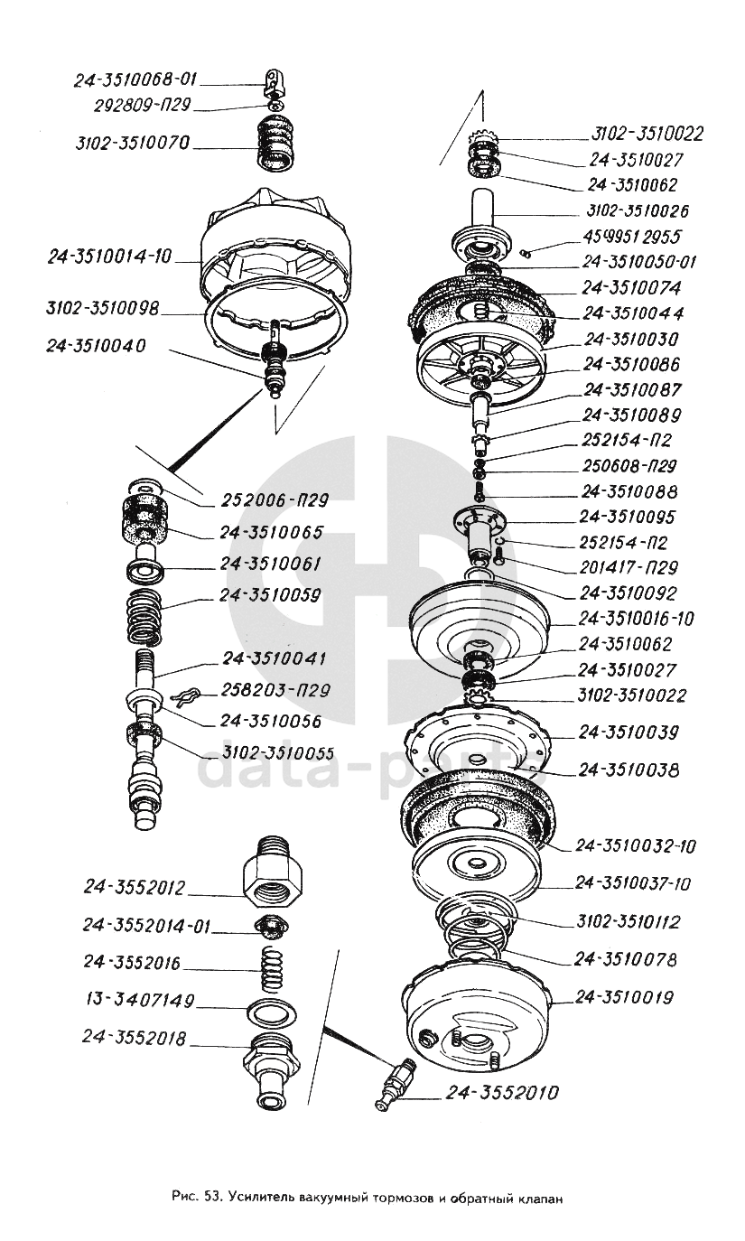 Усилитель вакуумный тормозов и обратный клапан ГАЗ-3302 (ГАЗель)