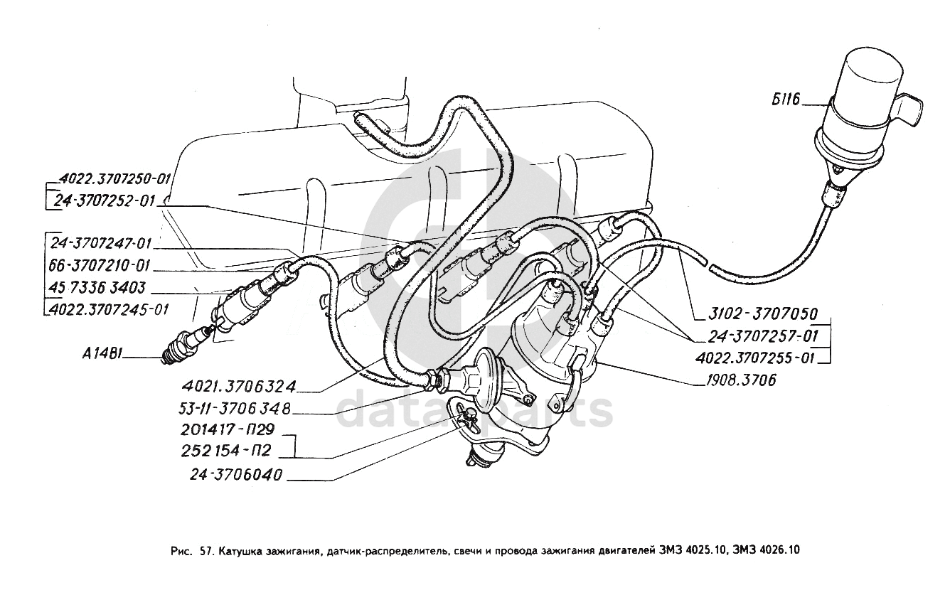 Катушка зажигания, датчик-распределитель, свечи и провода зажигания двигателей ЗМЗ 4025.10, ЗМЗ 4026.10 ГАЗ-3302 (ГАЗель)