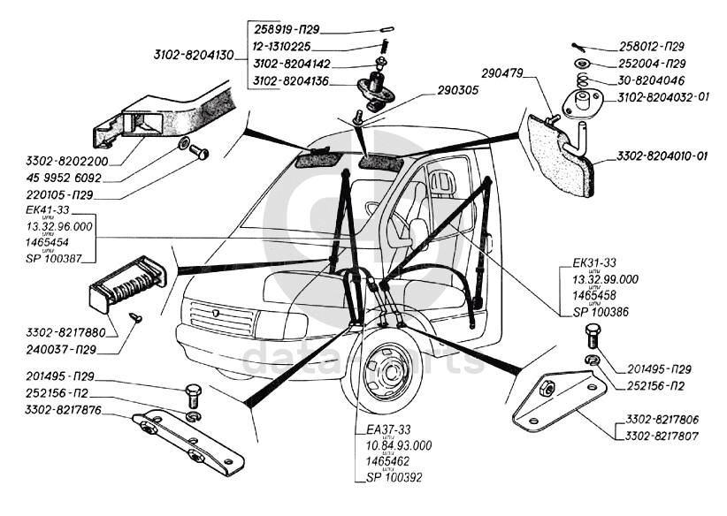 Ремни безопасности, поручень, козырьки противосолнечные с кронштейнами ГАЗ-3302