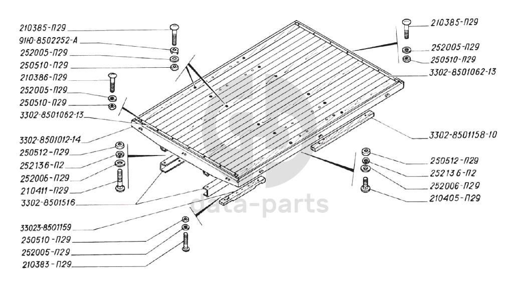 Основание платформы и его крепление (для автомобилей выпуска с 1996 г. по 2002 г.) ГАЗ-3302