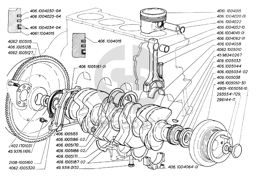Вал коленчатый, поршни и шатуны двигателей ЗМЗ-406 ГАЗ-3302