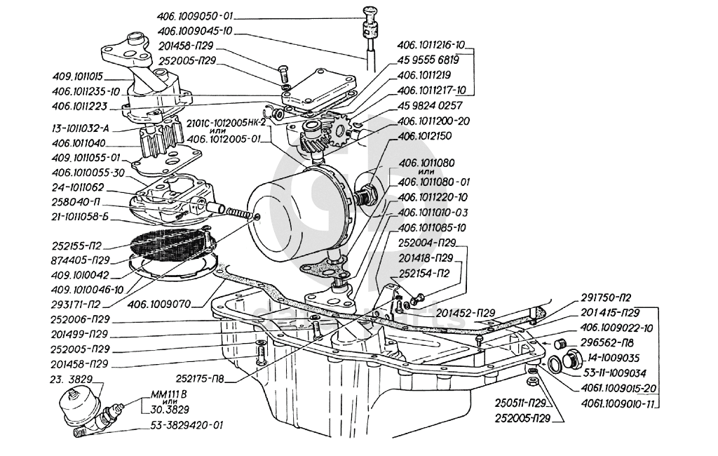 Насос масляный и его привод, фильтр очистки масла, картер ГАЗ-3302