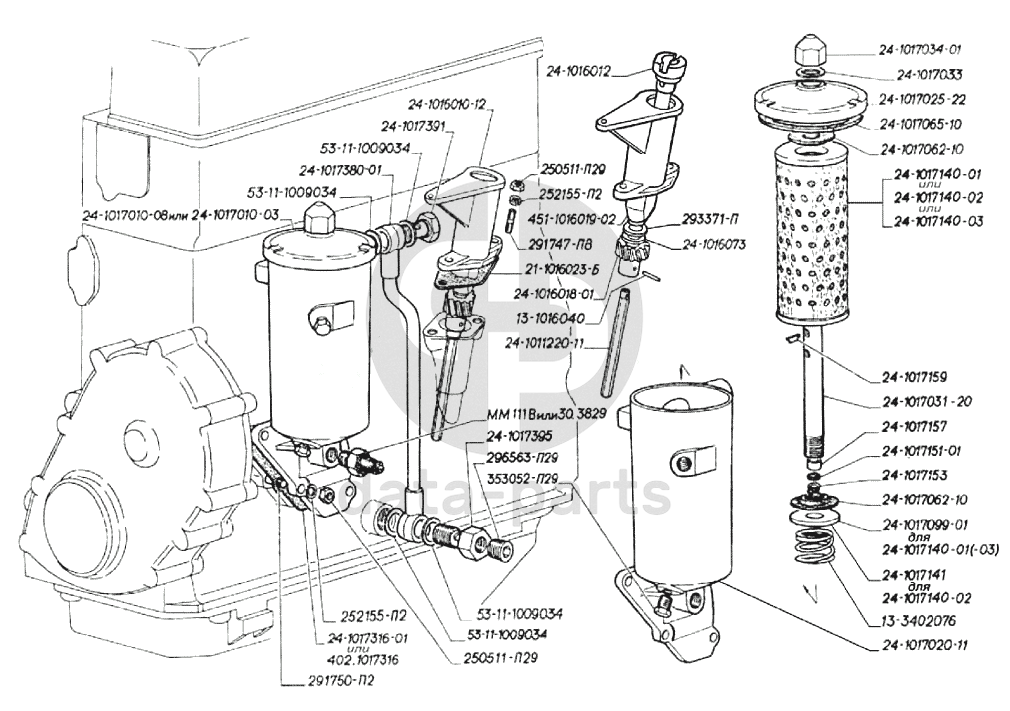 Привод распределителя зажигания и масляного насоса, фильтр тонкой очистки масла ГАЗ-3302