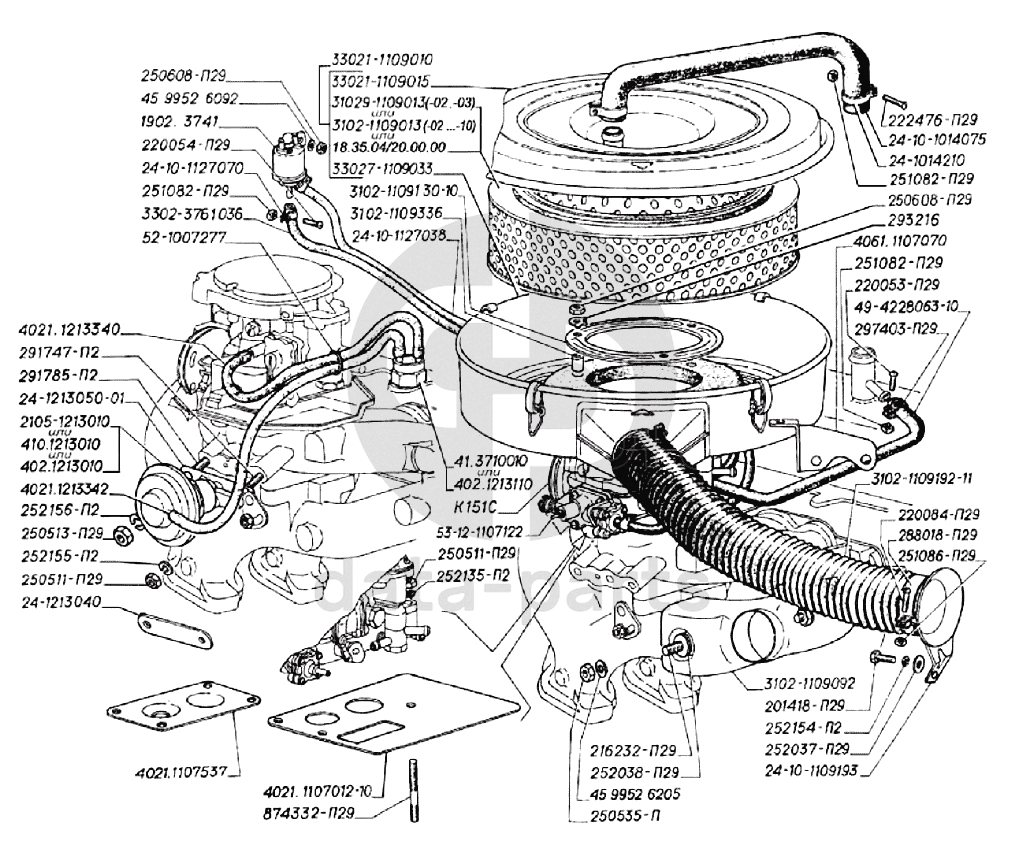 Карбюратор, фильтр воздушный, вентиляция картера двигателей ЗМЗ-402 ГАЗ-3302