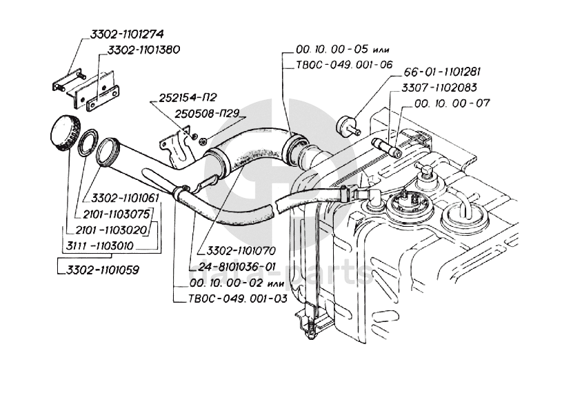 Бак топливный пластмассовый с горловиной и пробкой ГАЗ-3302
