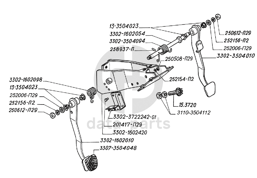 Педали сцепления и тормоза, выключатель сигнала торможения ГАЗ-3302