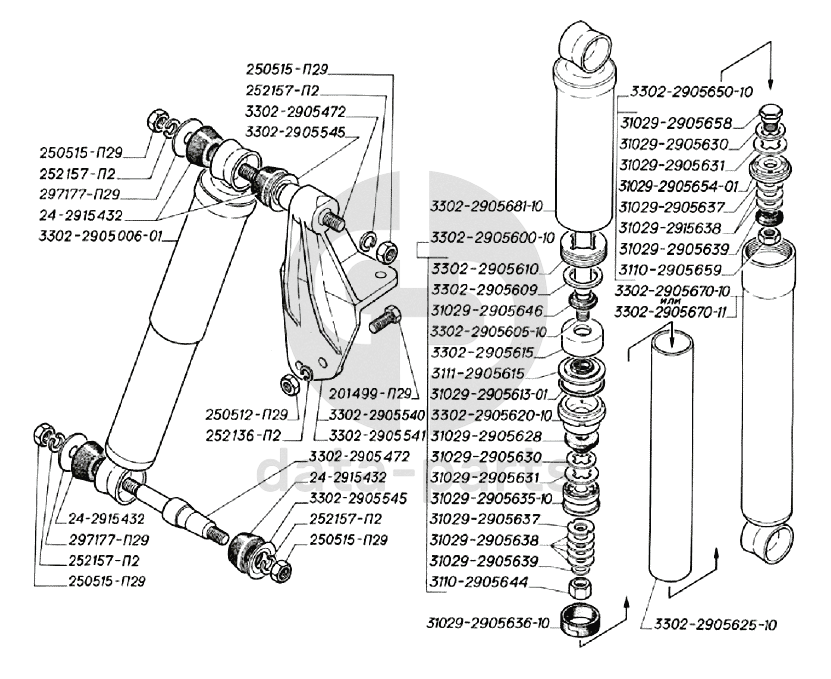 Амортизатор подвески, крепление передних амортизаторов ГАЗ-3302