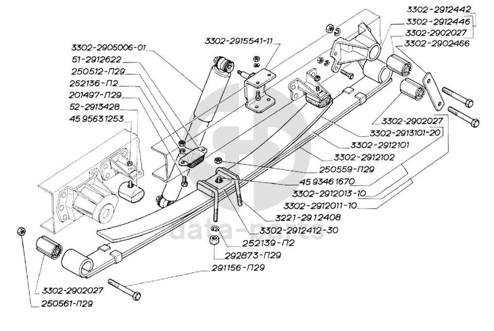 Установка задней подвески. Рессора задняя с подрессорником (для автомобилей выпуска с января 2003 г.) ГАЗ-3302