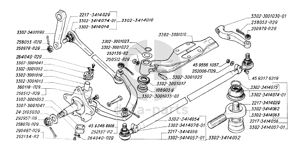Балка передней оси, поворотные кулаки, тяги рулевые, сошка руля ГАЗ-3302
