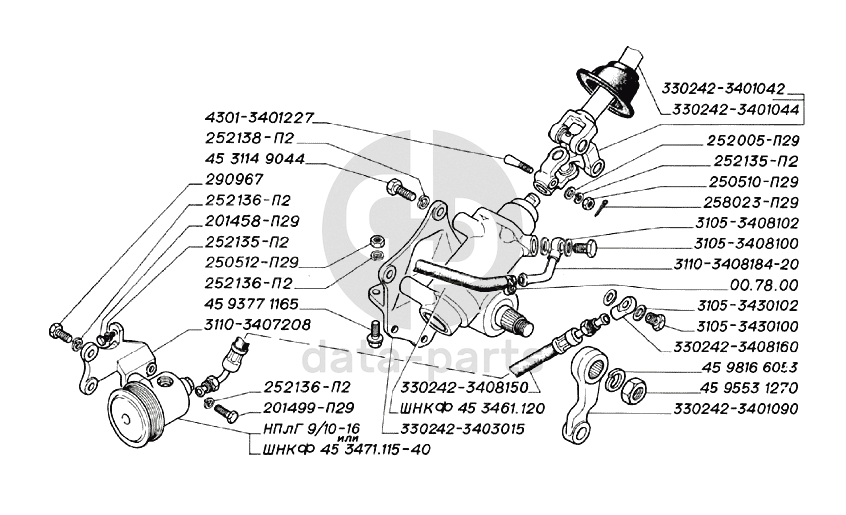 Механизм рулевого управления с гидроусилителем ГАЗ-3302