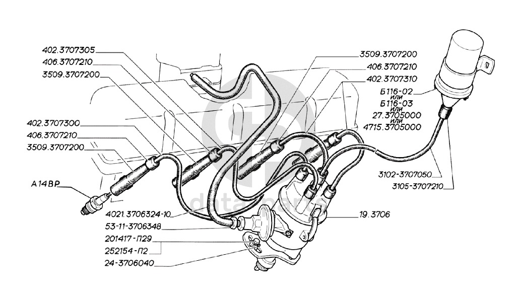 Катушка зажигания, датчик-распределитель, провода и свечи двигателей ЗМЗ-402 ГАЗ-3302