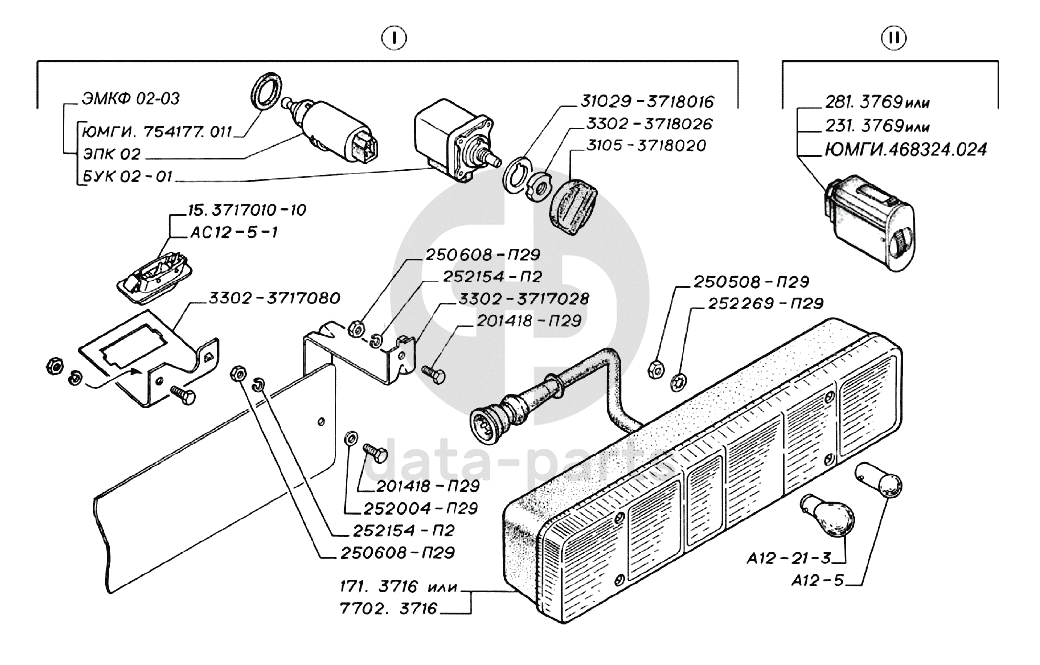 Фонари задние, электрокорректор головных фар ГАЗ-3302