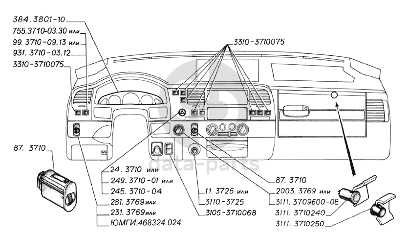 Органы управления на панели приборов, комбинация приборов (для автомобилей выпуска с 2003 г.) ГАЗ-3302