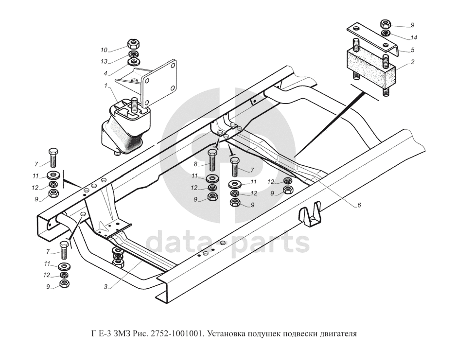 2752-1001001. Установка подушек подвески двигателя ГАЗ-3302 (доп. с дв. ЗМЗ Е 3)