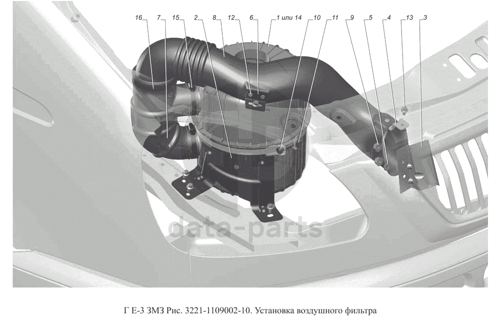 3221-1109002-10. Установка воздушного фильтра ГАЗ-3302 (доп. с дв. ЗМЗ Е 3)