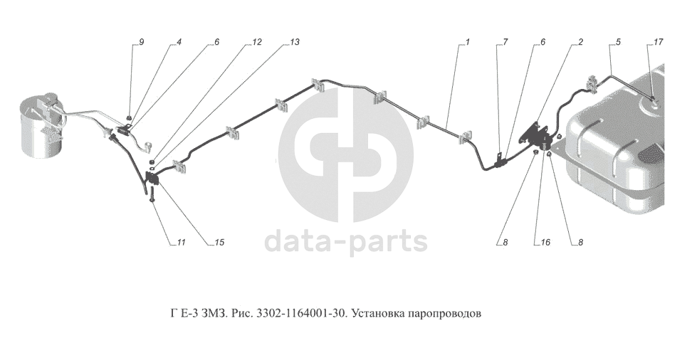 3302-1164001-30. Установка паропроводов ГАЗ-3302 (доп. с дв. ЗМЗ Е 3)
