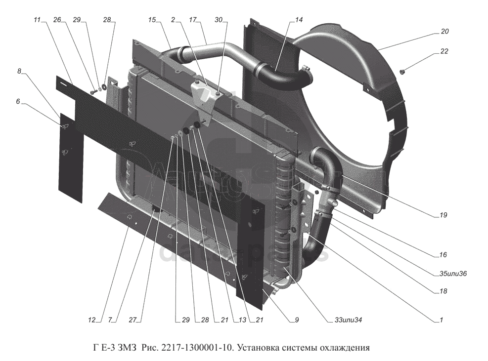 2217-1300001-10. Установка системы охлаждения ГАЗ-3302 (доп. с дв. ЗМЗ Е 3)