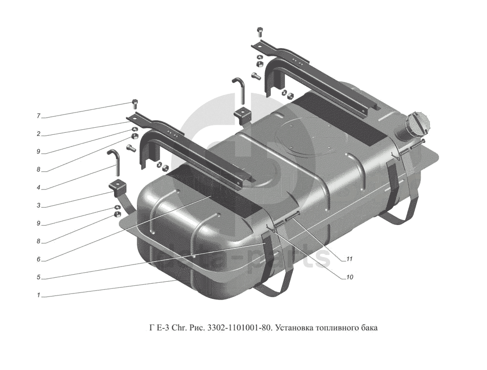 3302-1101001-80. Установка топливного бака ГАЗ-3302 (доп. с дв. Chr Е 3)