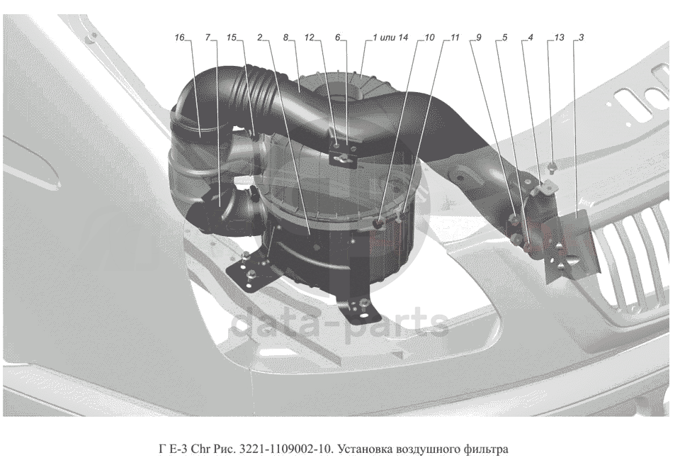 3221-1109002-10. Установка воздушного фильтра ГАЗ-3302 (доп. с дв. Chr Е 3)