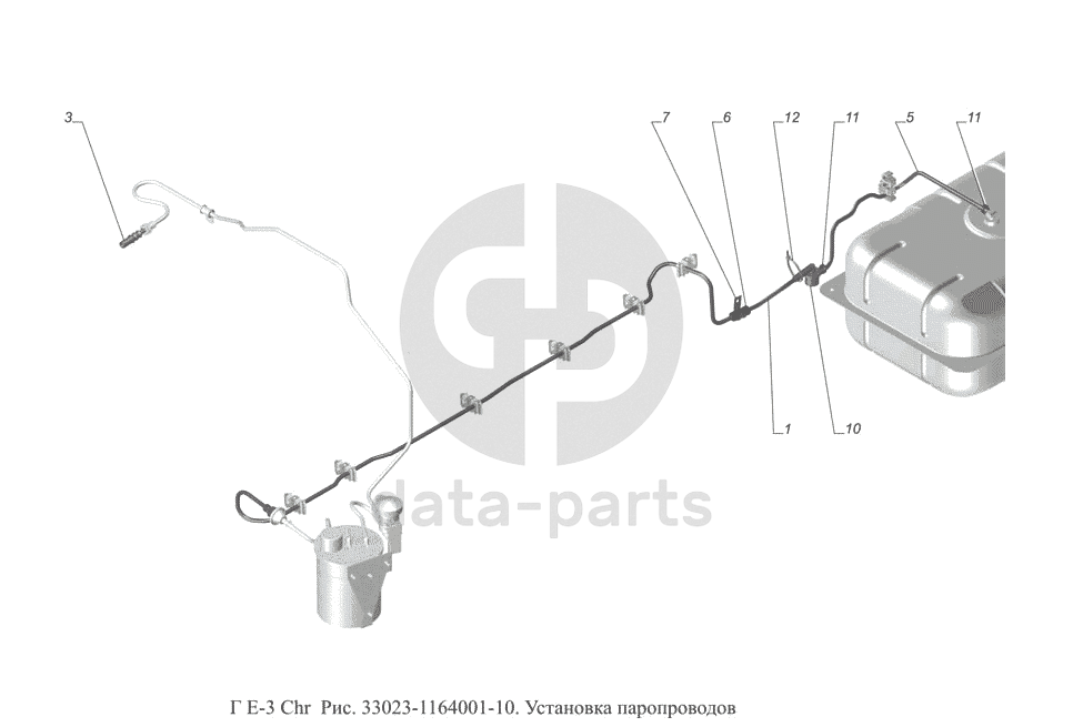 33023-1164001-10. Установка паропроводов ГАЗ-3302 (доп. с дв. Chr Е 3)