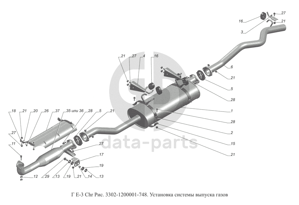 3302-1200001-748.Установка системы выпуска газов ГАЗ-3302 (доп. с дв. Chr Е 3)