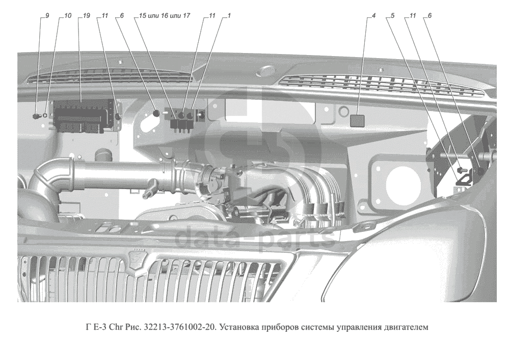32213-3761002-20.Установка приборов системы управления двигателем ГАЗ-3302 (доп. с дв. Chr Е 3)