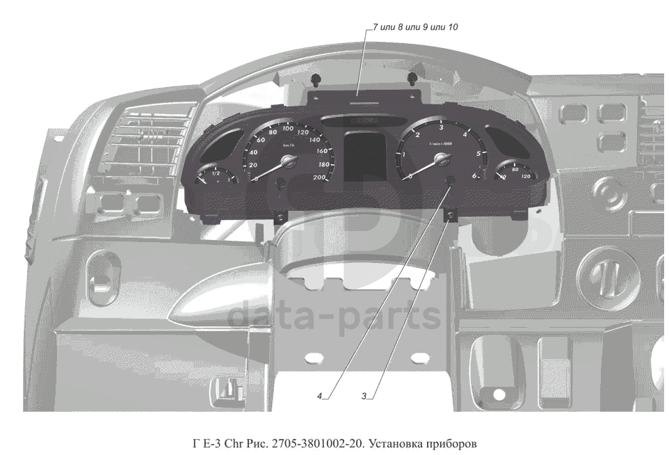 2705-3801002-20. Установка приборов ГАЗ-3302 (доп. с дв. Chr Е 3)