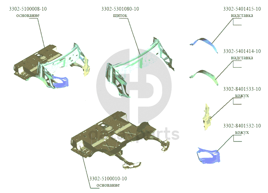 Основание кабины ГАЗ-3302 (Кузовные дет.)