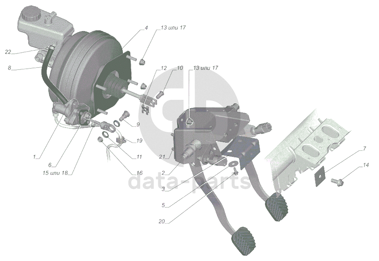 Усилитель вакуумный с главным цилиндром тормозов и кронштейном