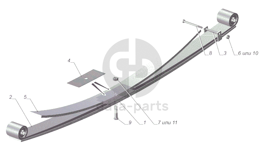 3302-2912011-12 Рессора задняя с шарнирами и подрессорником ГАЗель-Бизнес 2705-393