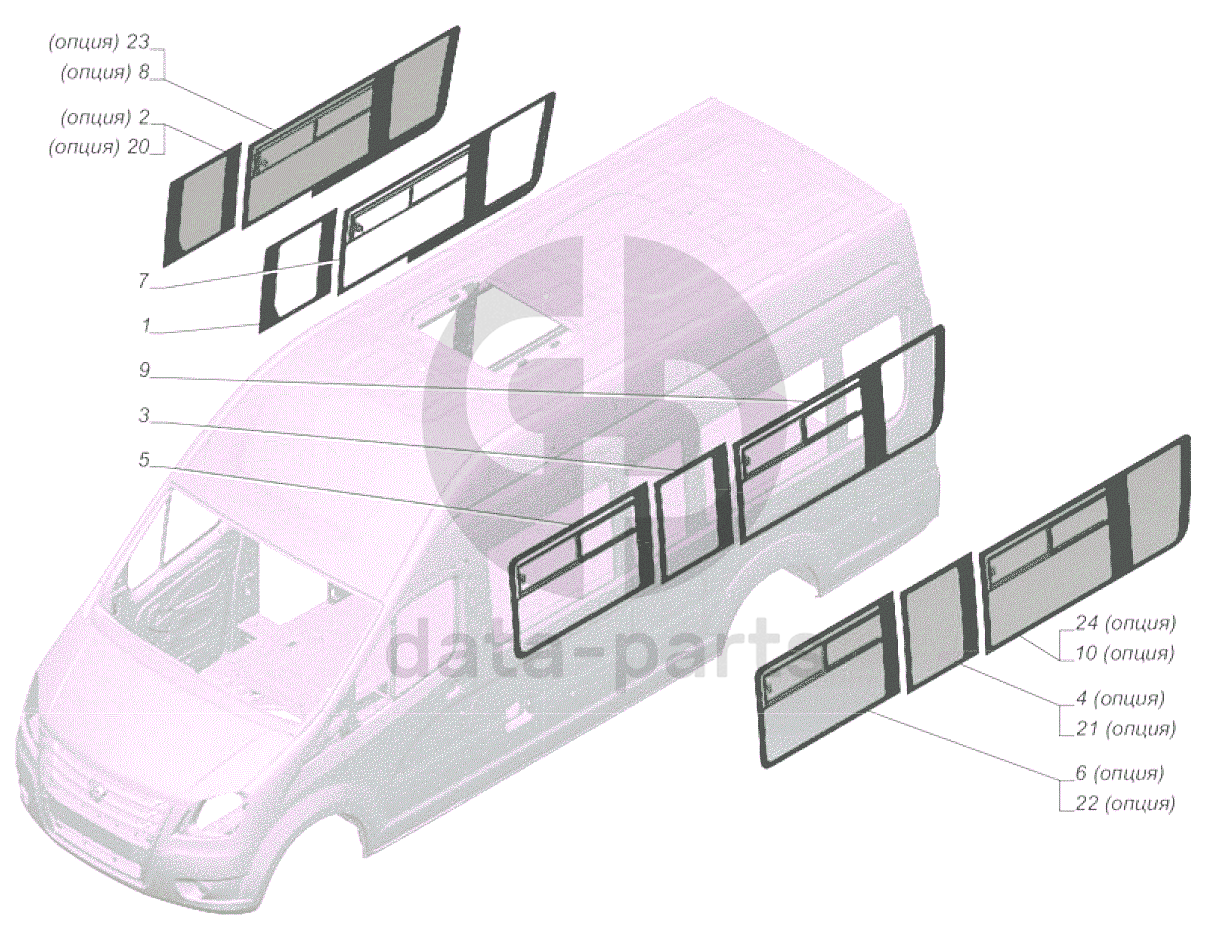 A62R33-5403002 Установка деталей окна боковины ГАЗЕЛЬ NEXT A65R32-40