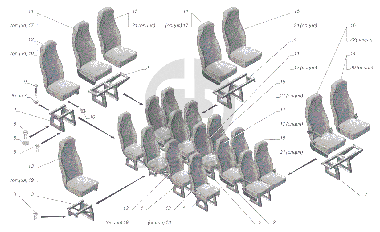 A65R32-6820002-10 Установка задних сидений опция Сиденья салона без ремней безопасности ГАЗЕЛЬ NEXT A65R32-40
