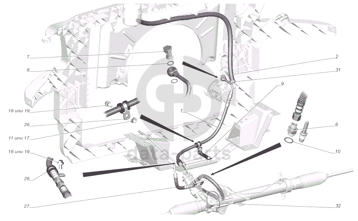 A64R42-3408001 Установка трубопроводов и шлангов гидроусилителя руля опция Кондиционер, Подготовка под установку кондиционера ГАЗель NEXT Citiline A64R42