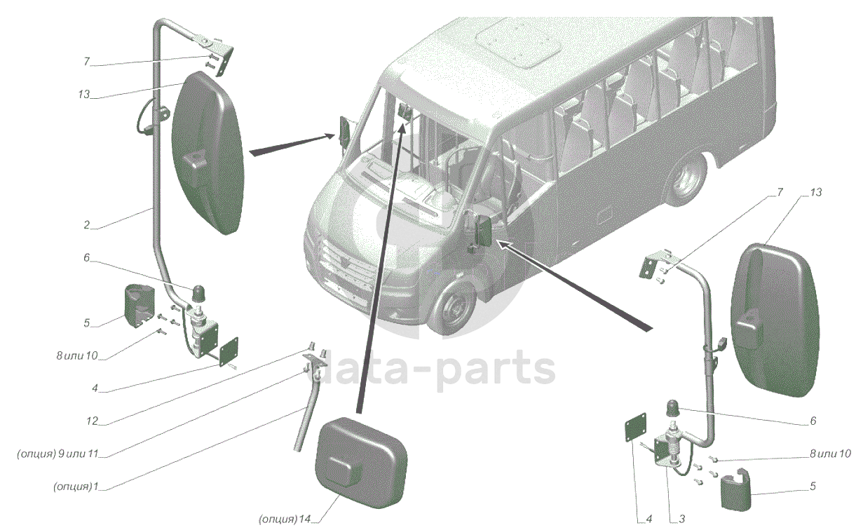 A67R42-8201002-01 Установка зеркал заднего вида опция Электроподогрев наружных зеркал ГАЗель NEXT Citiline A64R42