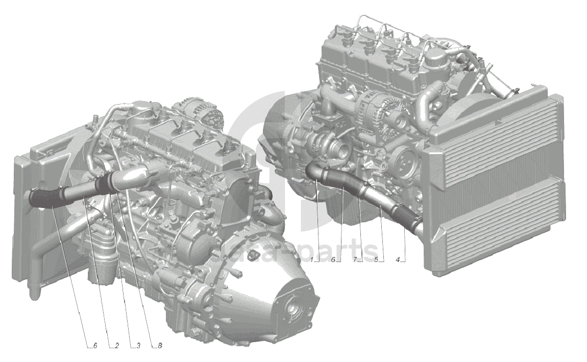 3302-1173001-60. Установка трубопроводов охладителя наддува ГАЗ-3302 (Cummins E-4)