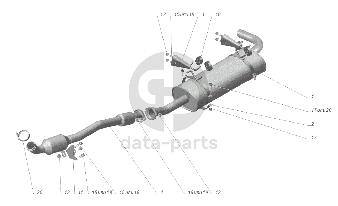 33023-1200001-30. Установка системы выпуска газов ГАЗ-3302 (Cummins E-4)