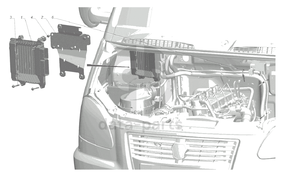 33027-3761001-10. Установка блока управления двигателем ГАЗ-3302 (Cummins E-4)