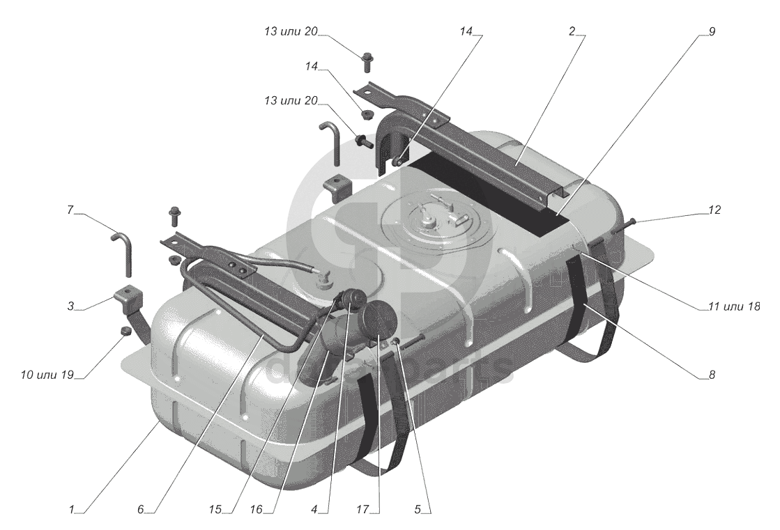 2705-1101001-80. Установка топливного бака ГАЗ-2705 (Cummins E-4)