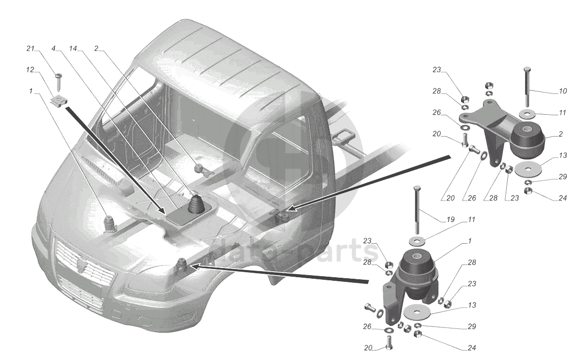 3302-5000001-10. Установка деталей кабины ГАЗ-3302 (с двиг. УМЗ)