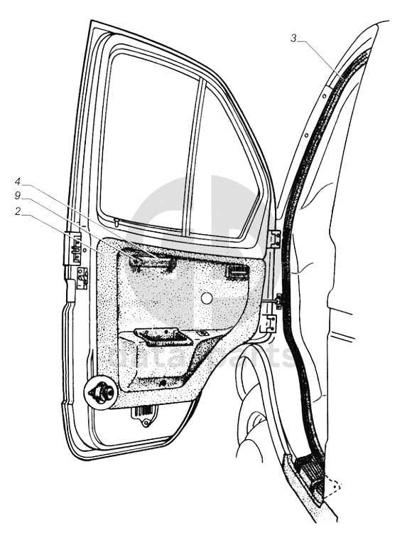 3302-6102002-01. Установка обивки двери ГАЗ-3302 (с двиг. УМЗ)