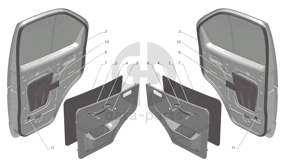3302-6102002-40. Установка обивок дверей ГАЗ-3302 (с двиг. УМЗ)