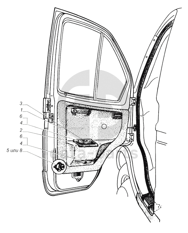 3302-6102211. Обивка двери левая в сборе ГАЗ-3302 (с двиг. УМЗ)