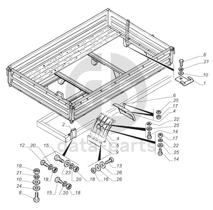 3302-8521001-30. Установка деталей крепления платформы и брызговиков ГАЗ-3302 (с двиг. УМЗ)