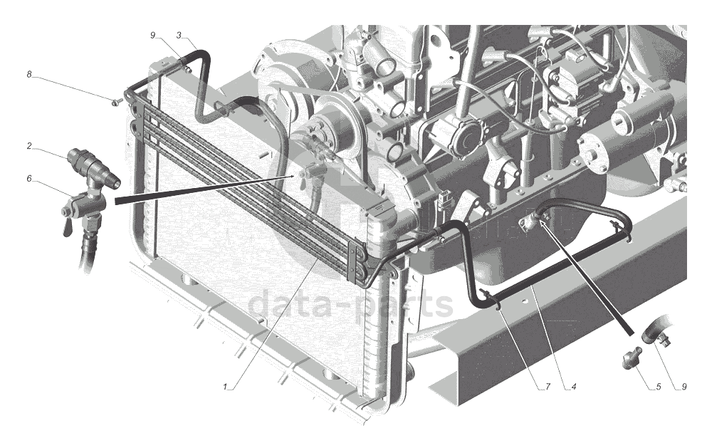 3302-1013001-20. Установка масляного радиатора ГАЗ-3302 (с двиг. УМЗ)